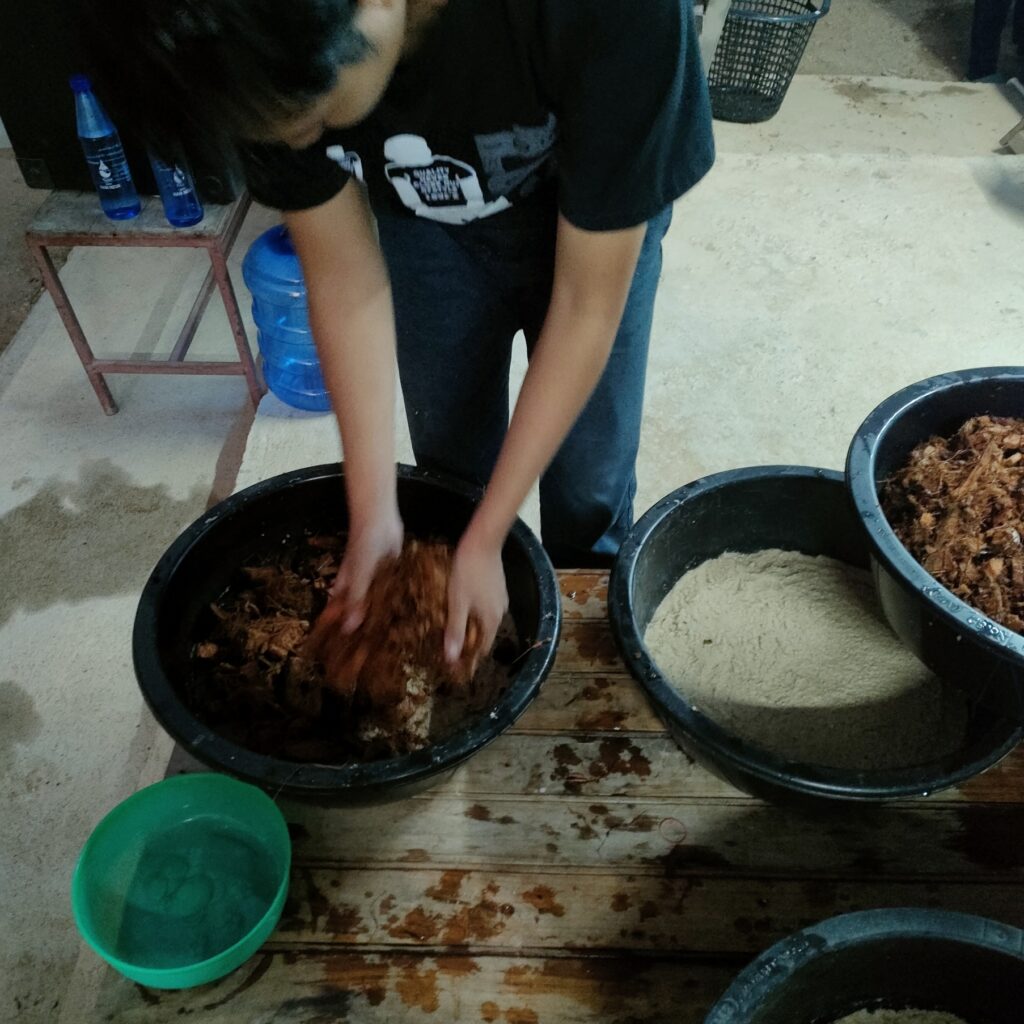 - เปลือกมะพร้าวสับหยาบ จริงแม่เตรียมไว้แล้วบางส่วน และแม่ก็ซื้อที่สับละเอียดสำหรับปลูกต้นไม้มาอีก 4 ถุง
