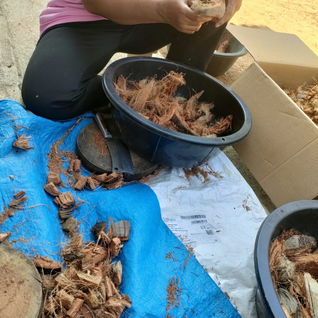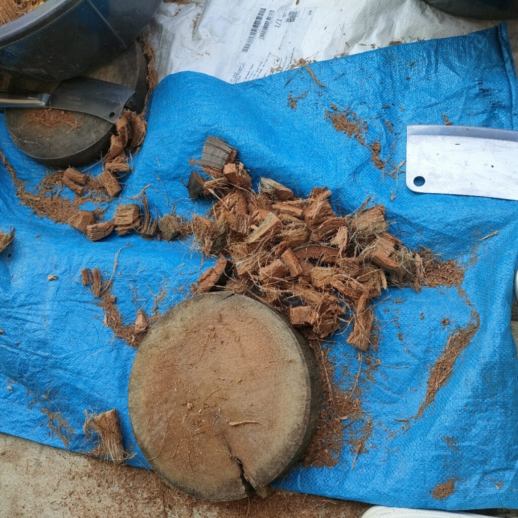 การเตรียมกาบมะพร้าวสับ