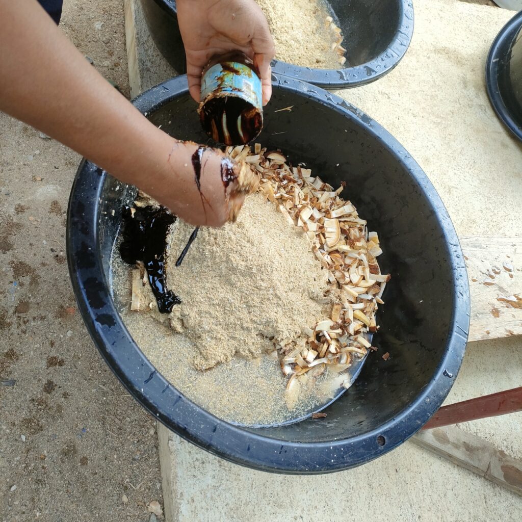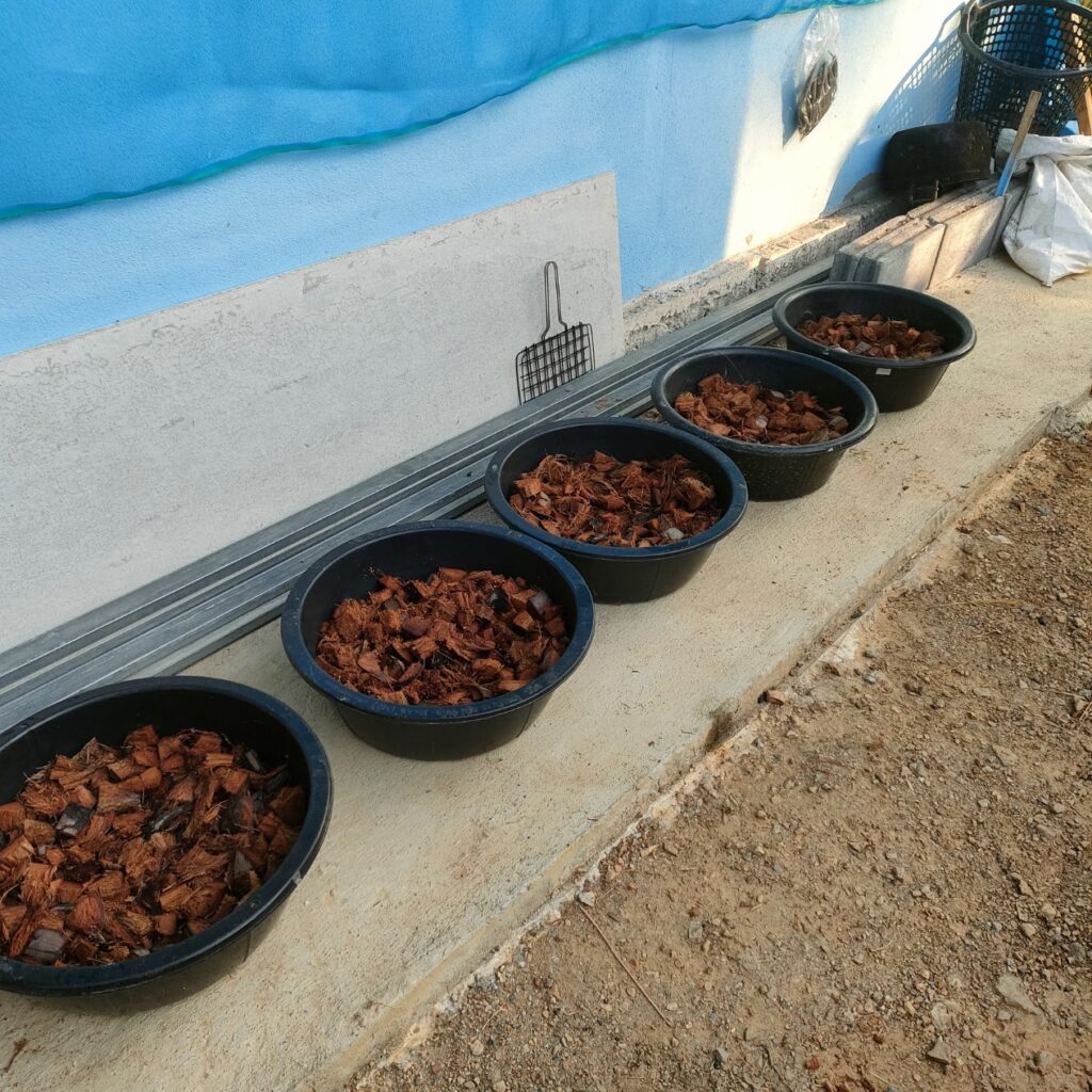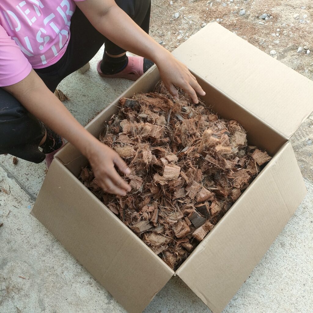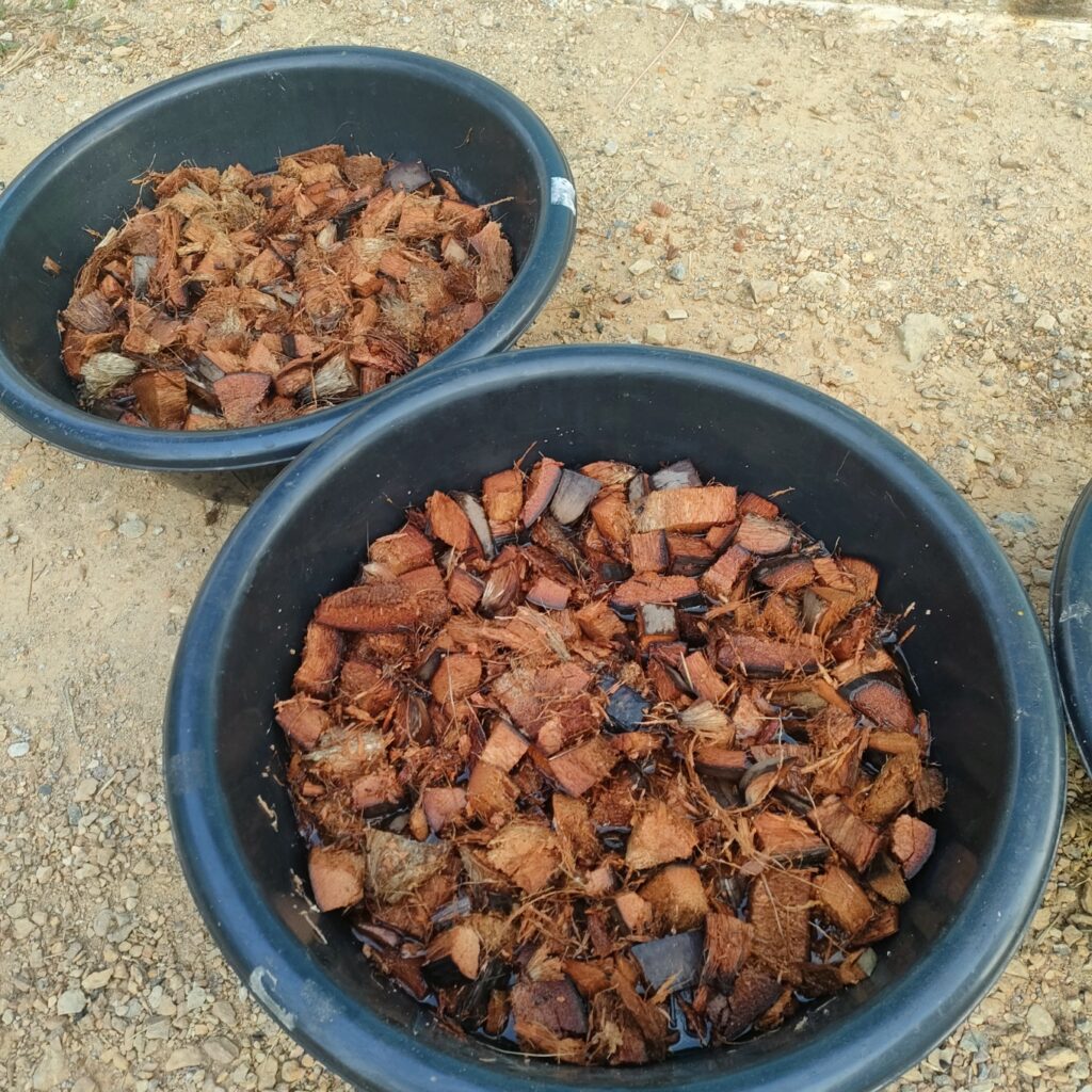 - เปลือกมะพร้าวสับหยาบ แช่น้ำข้ามคืน