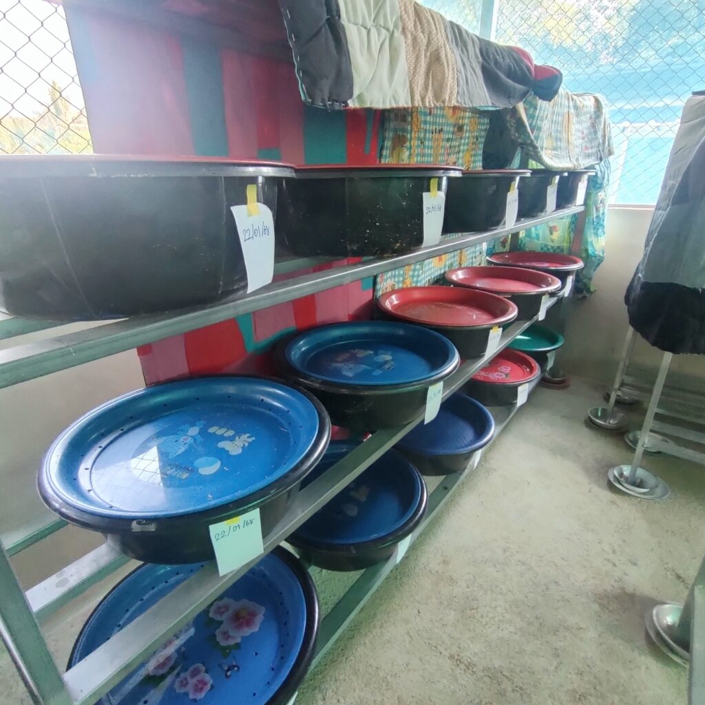 5. นำกะละมังเพาะเลี้ยงไปวางในชั้น รอ 15 วัน คัดเอาพ่อแม่พันธ์ุออก